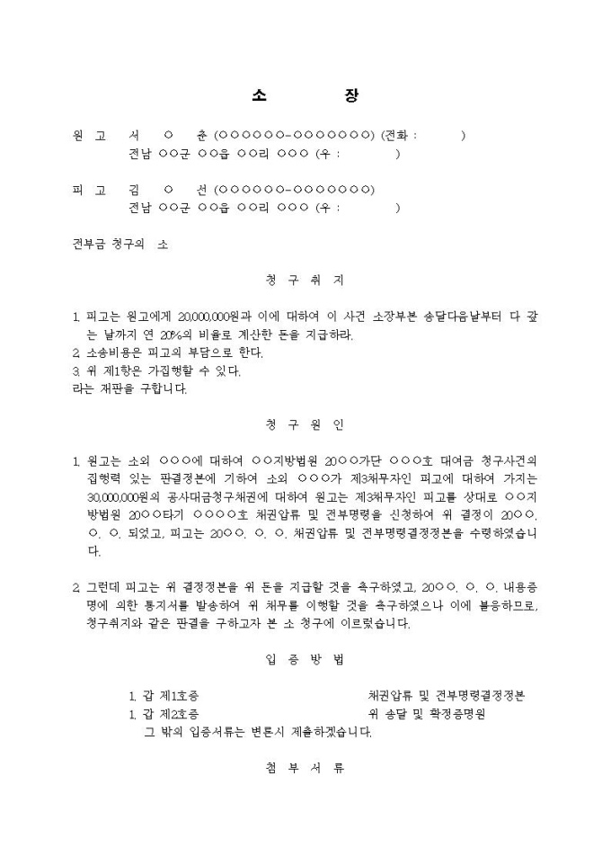 9,000원/월전부금 청구의 소(2)입니다.