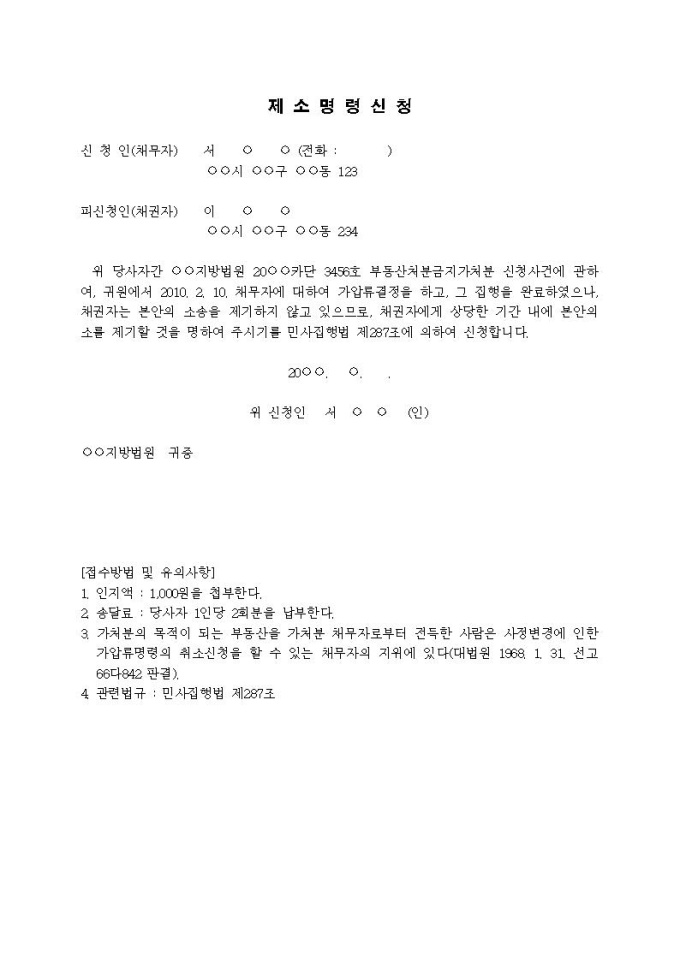 제소명령신청서(가처분인 경우)입니다.