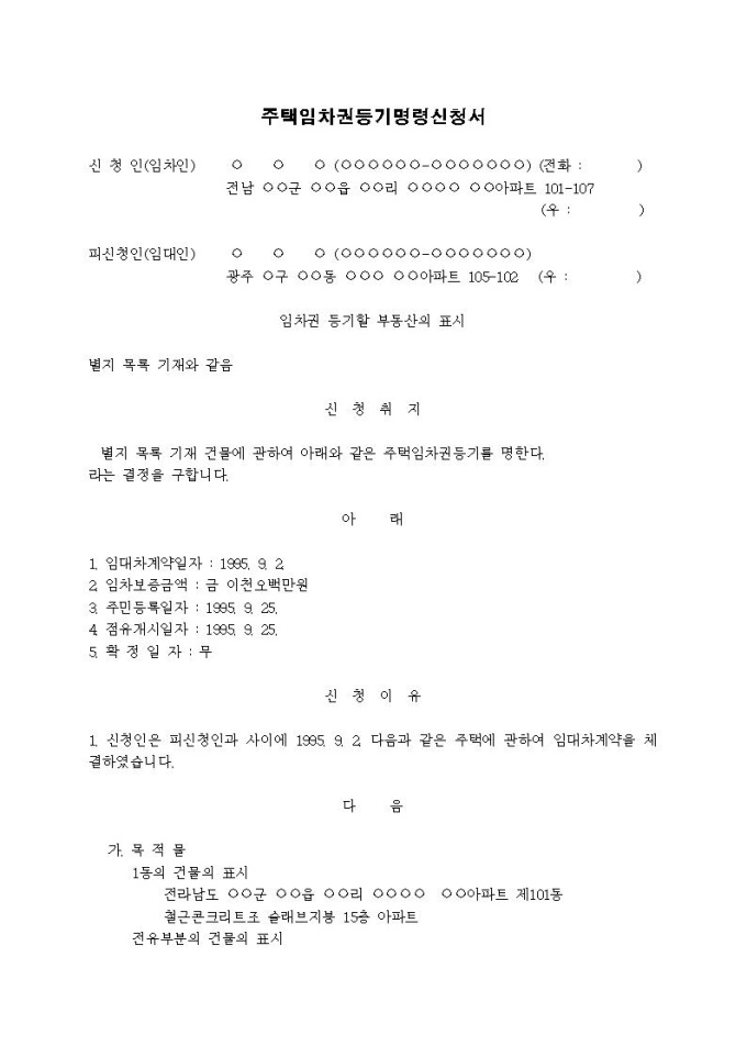9,000원/월주택임차권등기명령신청서입니다.