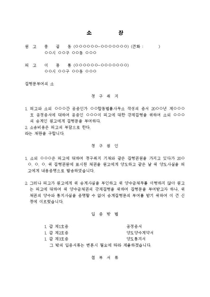 9,000원/월집행문부여의 소(채권양도양수)입니다.
