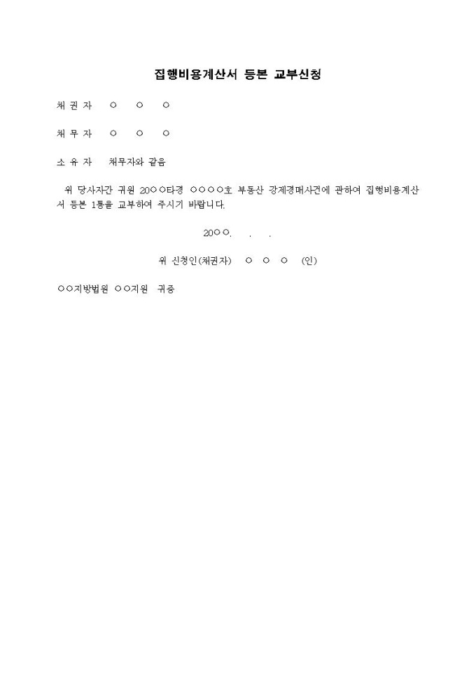 9,000원/월집행비용계산서등본교부신청서입니다.