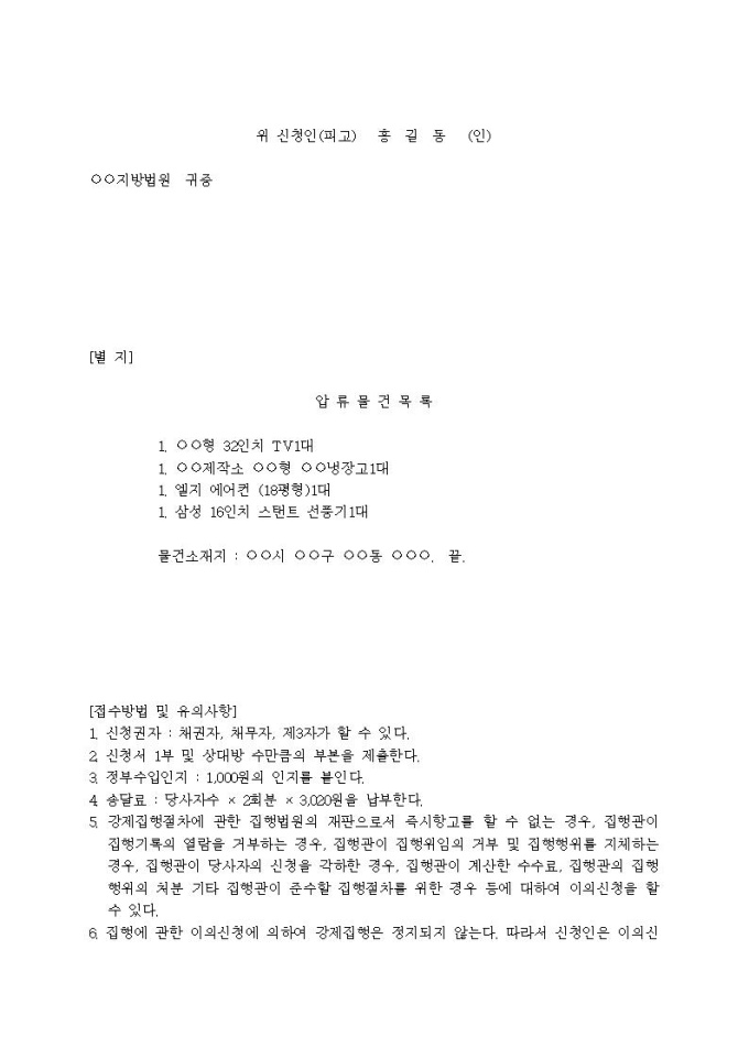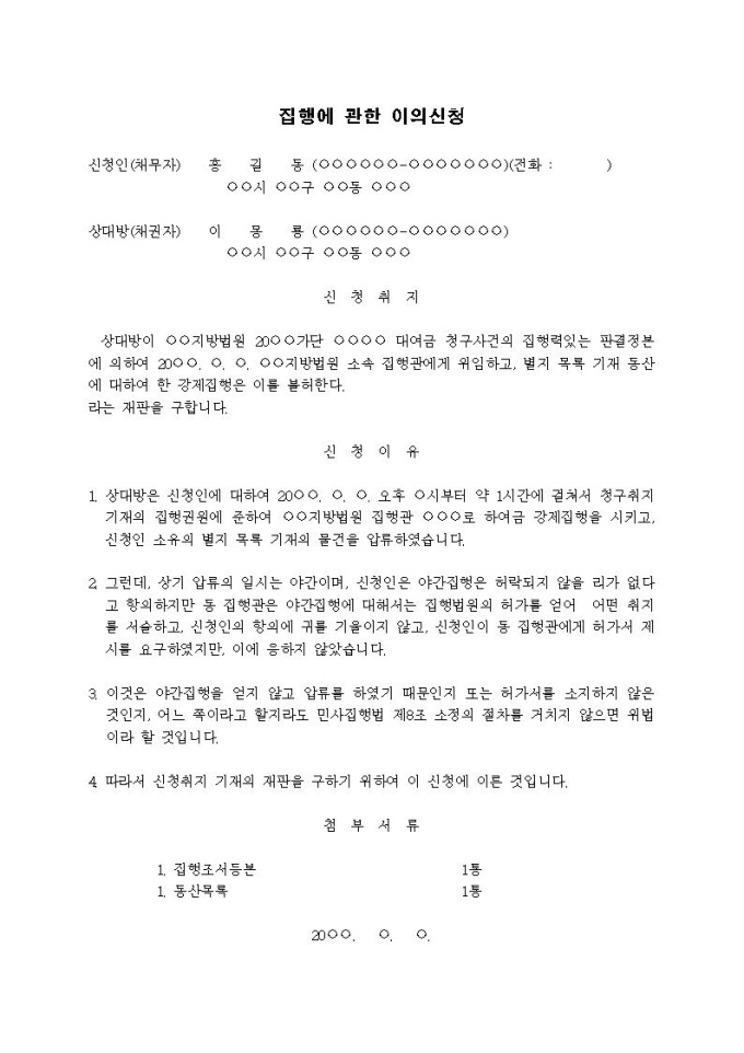 9,000원/월집행에 관한 이의신청서(야간집행)입니다.