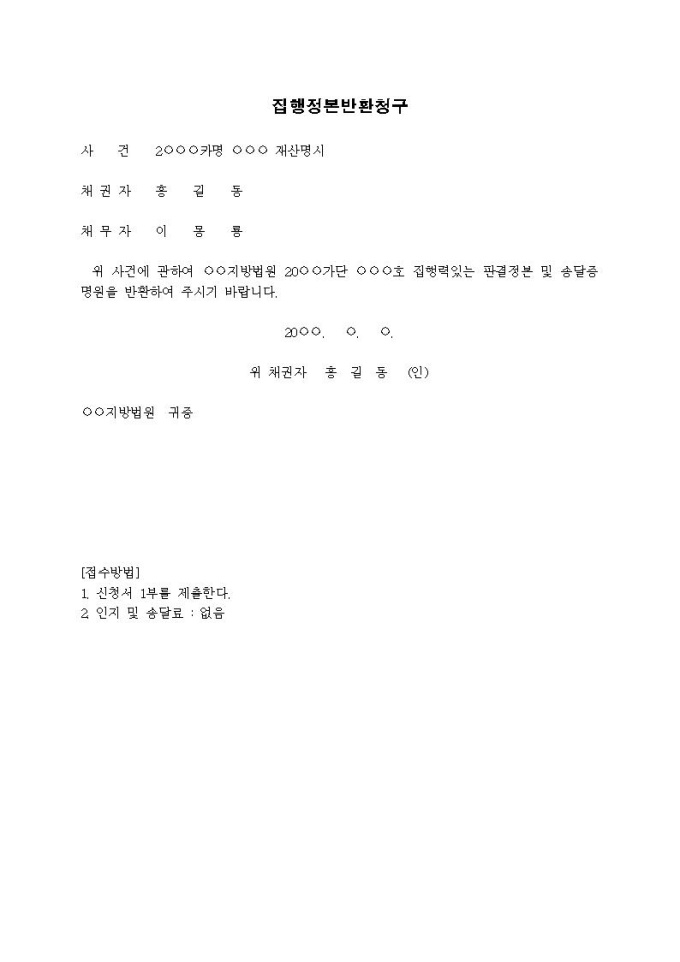 집행정본반환청구서