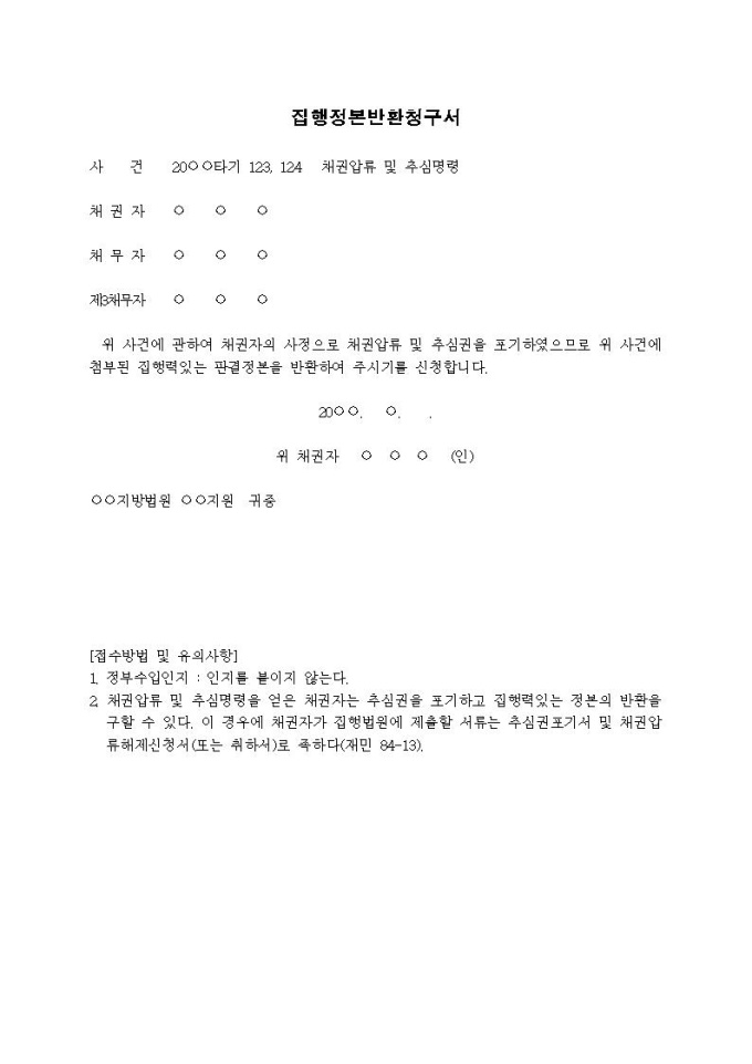 9,000원/월집행정본반환청구서(추심권포기로 인한)입니다.