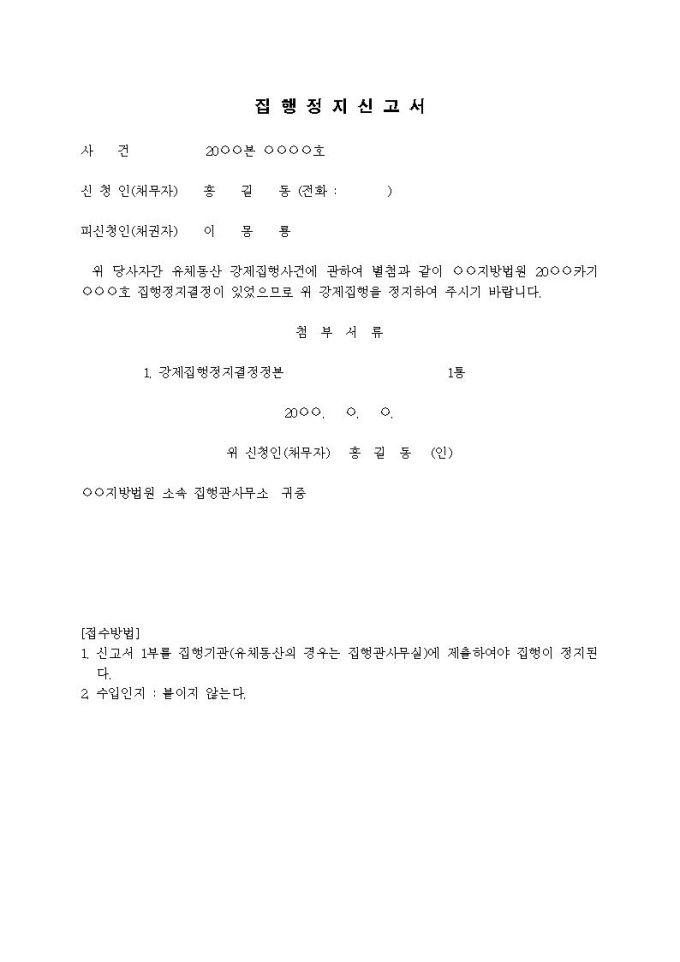 9,000원/월집행정지신고서입니다.
