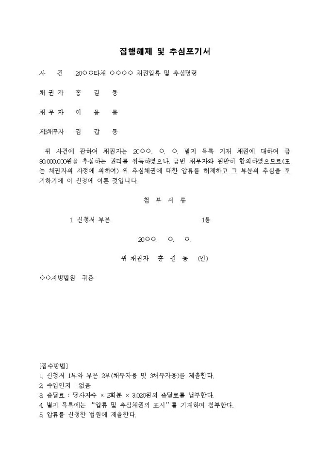 9,000원/월집행해제 및 추심포기서(합의 등)입니다.