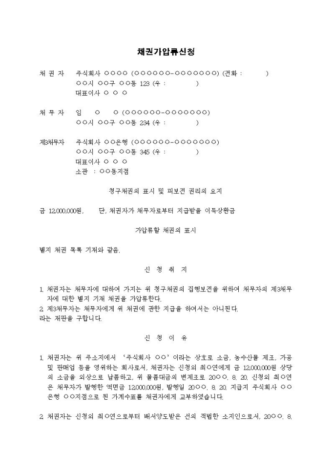 9,000원/월채권가압류신청서(이득상환금)입니다.
