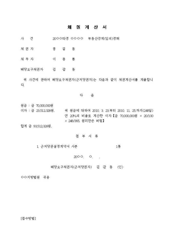 9,000원/월채권계산서(근저당권자)입니다.