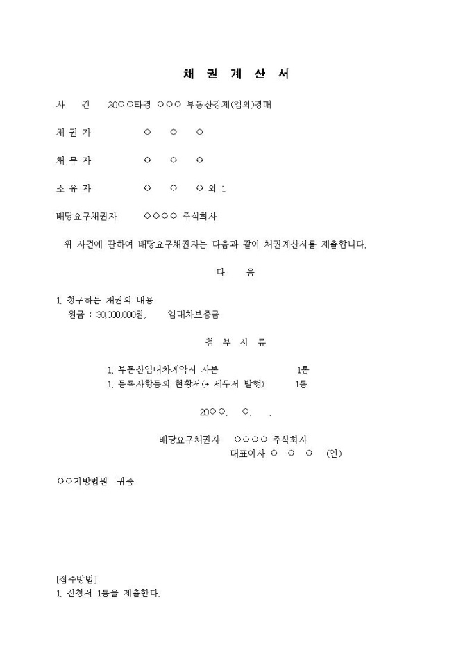9,000원/월채권계산서(임차인, 상가)입니다.