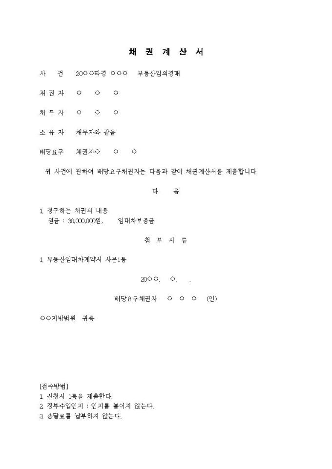 9,000원/월채권계산서(임차인, 주택)(2)입니다.