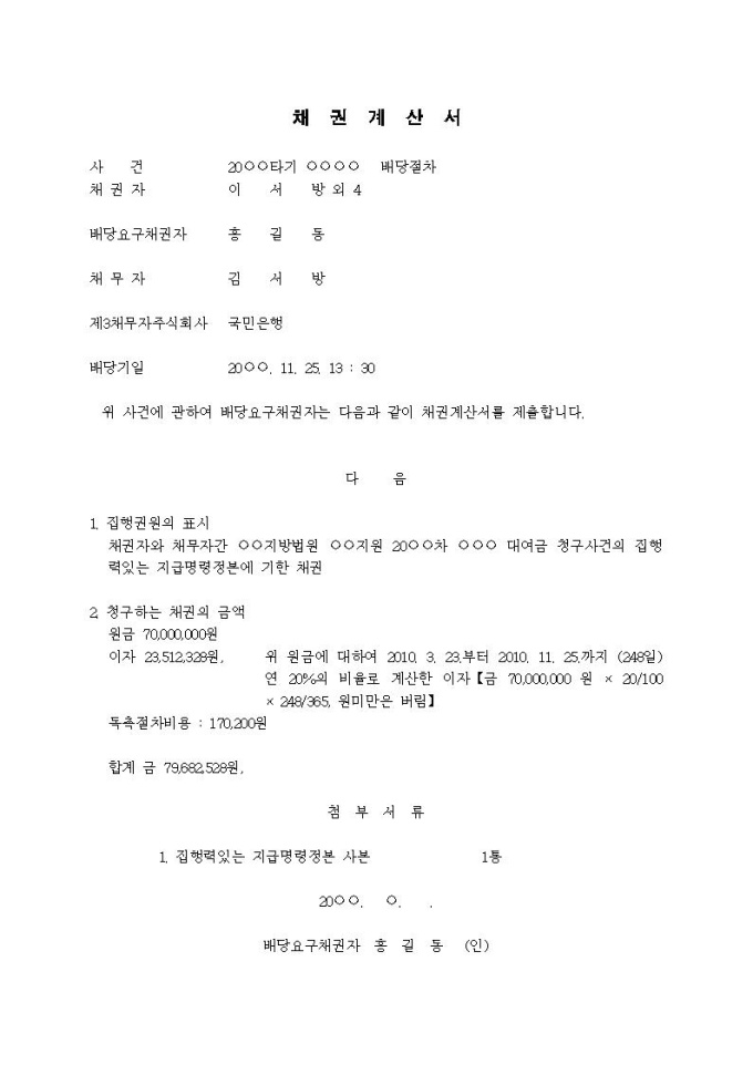 채권계산서(집행권원취득자)