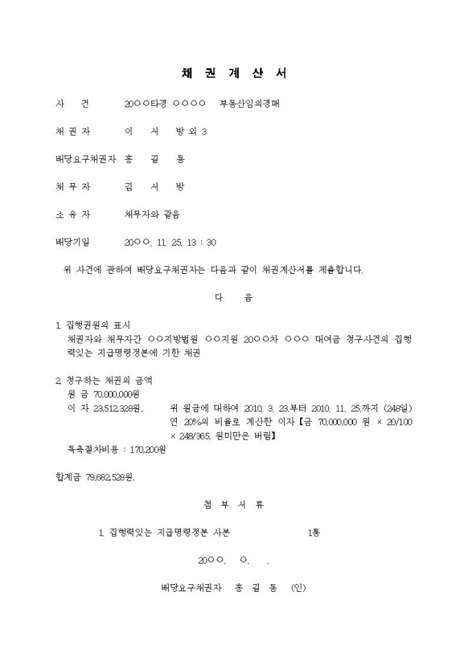 채권계산서(집행권원취득자)(2)입니다.