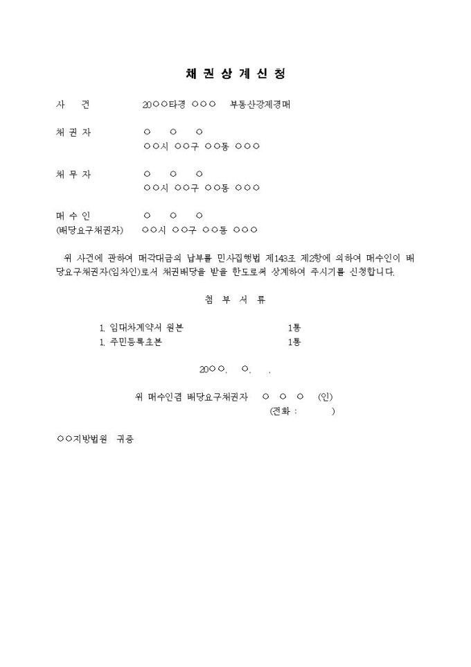 9,000원/월채권상계신청서(매수인이 임차인)입니다.