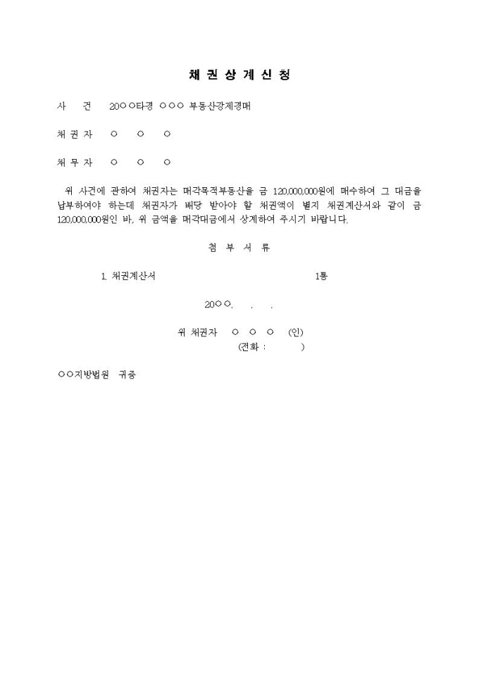 채권상계신청서(배당금에서 상계)(2)입니다.