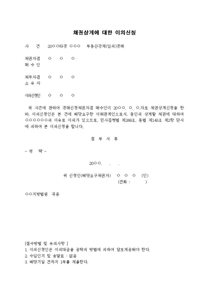 9,000원/월채권상계에 대한 이의신청입니다.
