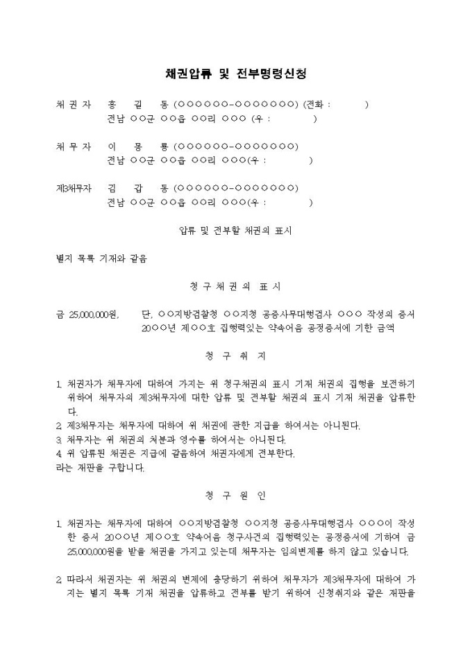 9,000원/월채권압류 및 전부명령신청서(검찰청공증)입니다.