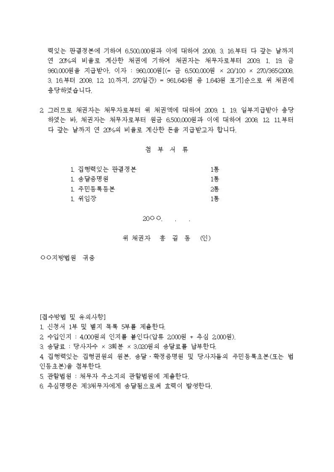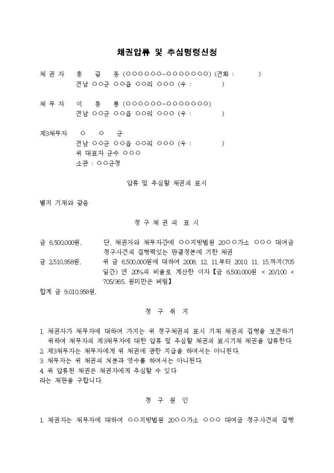 9,000원/월채권압류 및 추심명령신청서(일부변제)입니다.