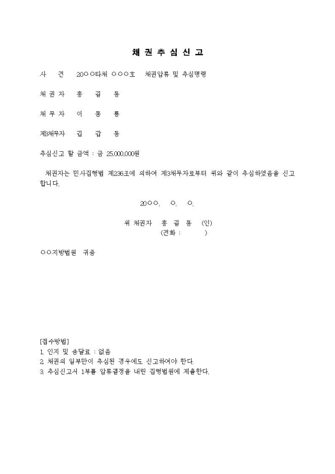 채권추심신고서(채권압류 및 추심명령)
