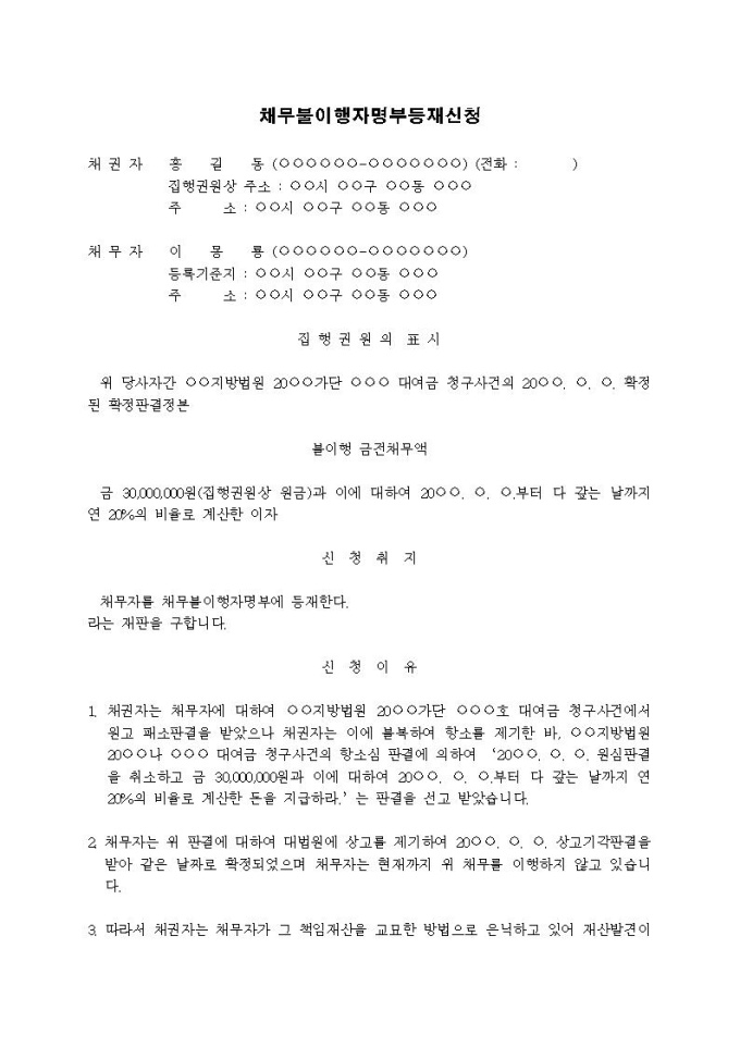 9,000원/월채무불이행자명부등재신청서(2)입니다.