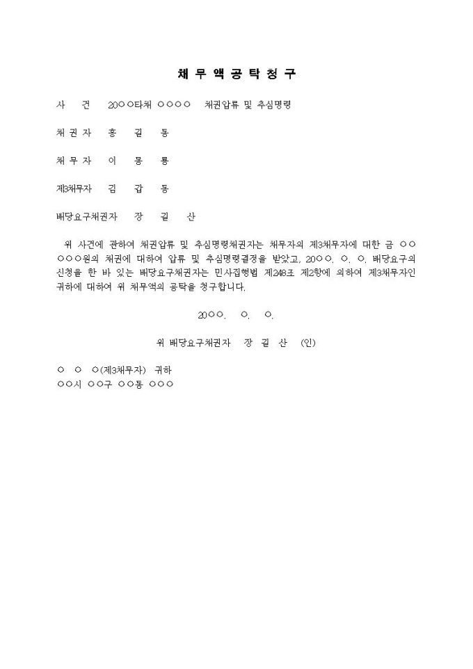 채무액 공탁청구서(채권압류 및 추심명령)