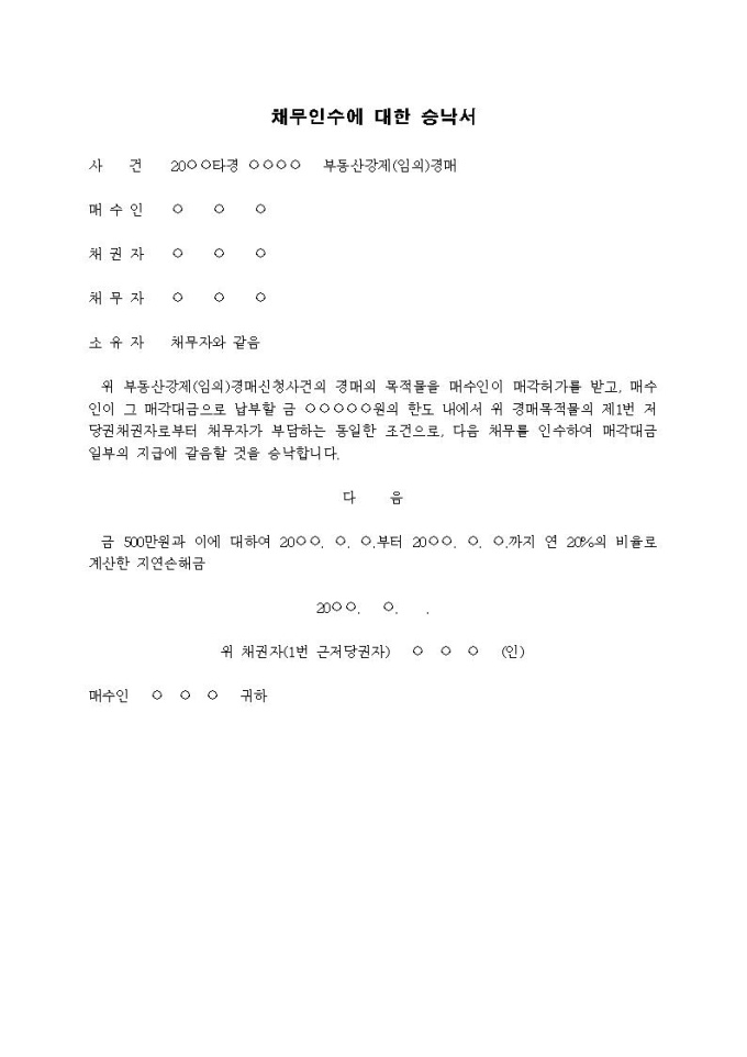 채무인수에 대한 승낙서(근저당권자)입니다.