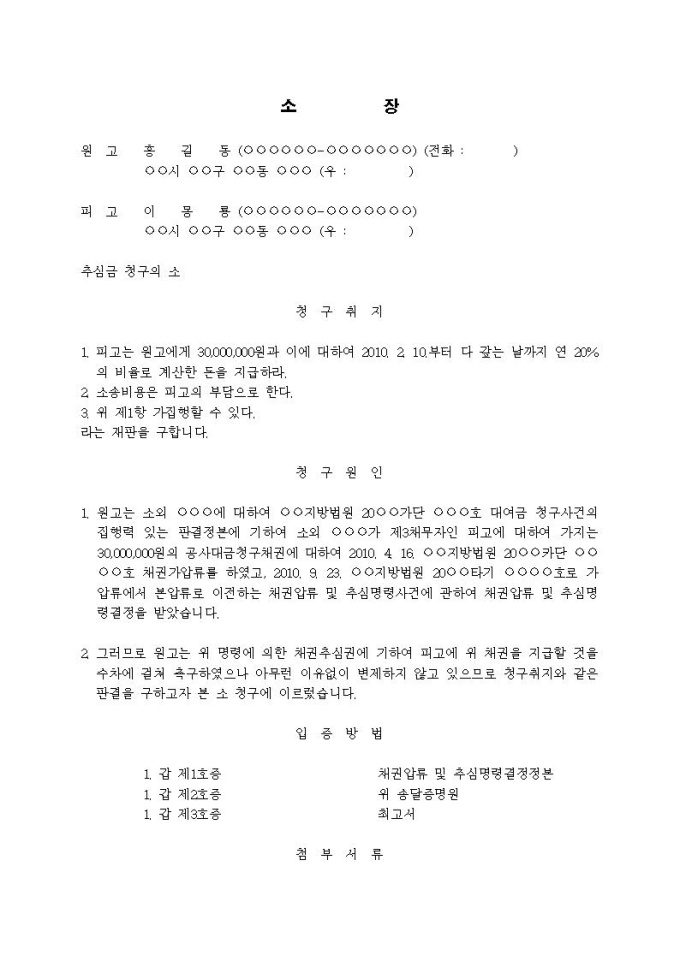 9,000원/월추심금 청구의 소입니다.