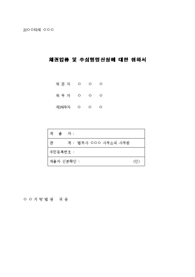 취하서 표지(채권압류 및 추심명령에 대한 취하서)