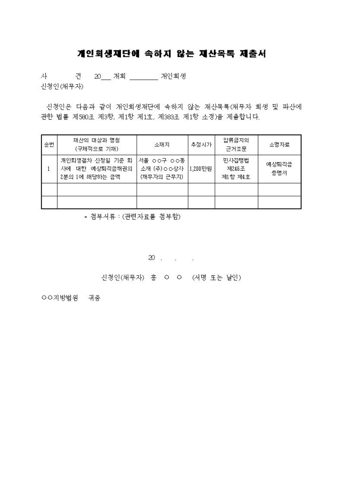 9,000원/월개인회생재단에 속하지 않는 재산목록 제출서입니다.