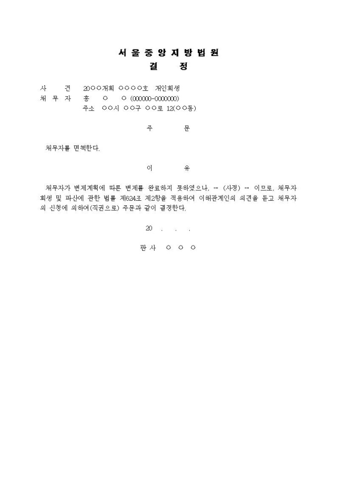 9,000원/월면책 결정문(변제미완료시)입니다.