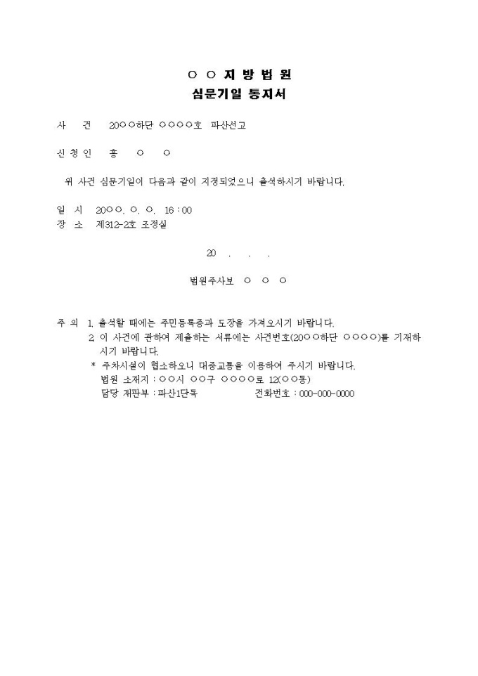 9,000원/월심문기일 통지서입니다.