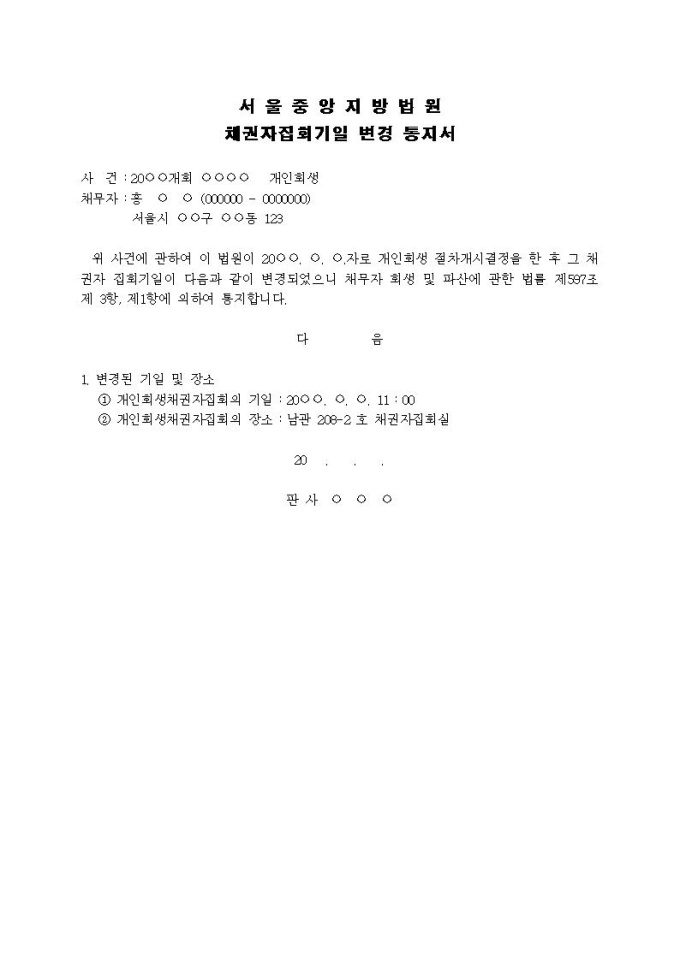 9,000원/월채권자집회기일 변경 통지서입니다.