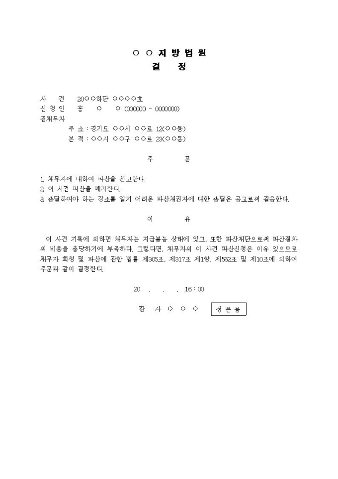 9,000원/월파산결정문입니다.