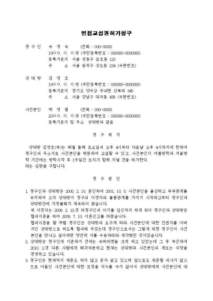 면접교섭권허가청구서(2)