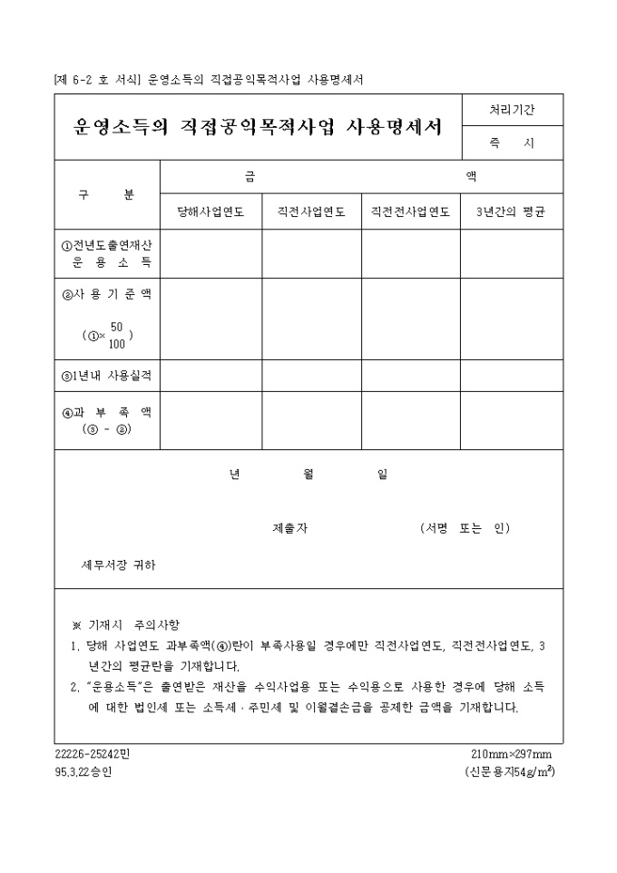 운영소득의 직접 공익목적사업 사용명세서