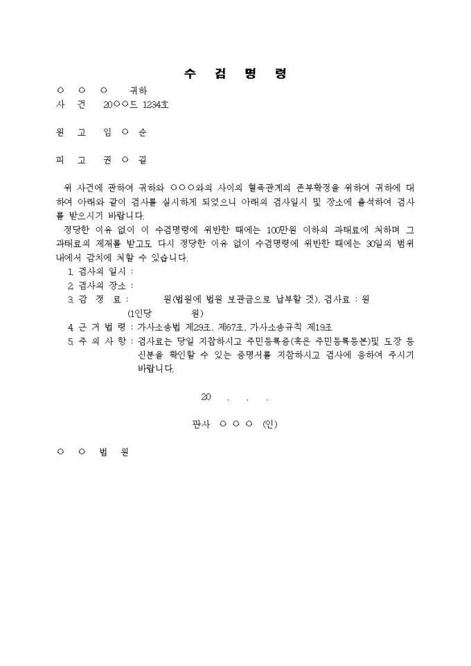 문례 - 수검명령입니다.