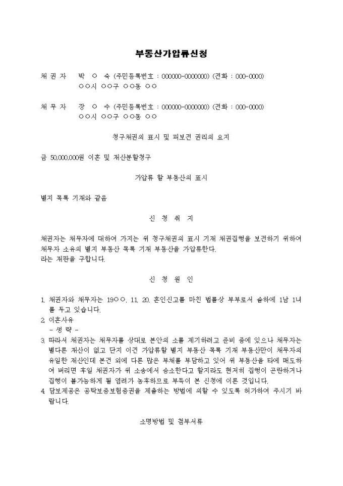 9,000원/월부동산가압류신청서(이혼 및 재산분할 청구)입니다.