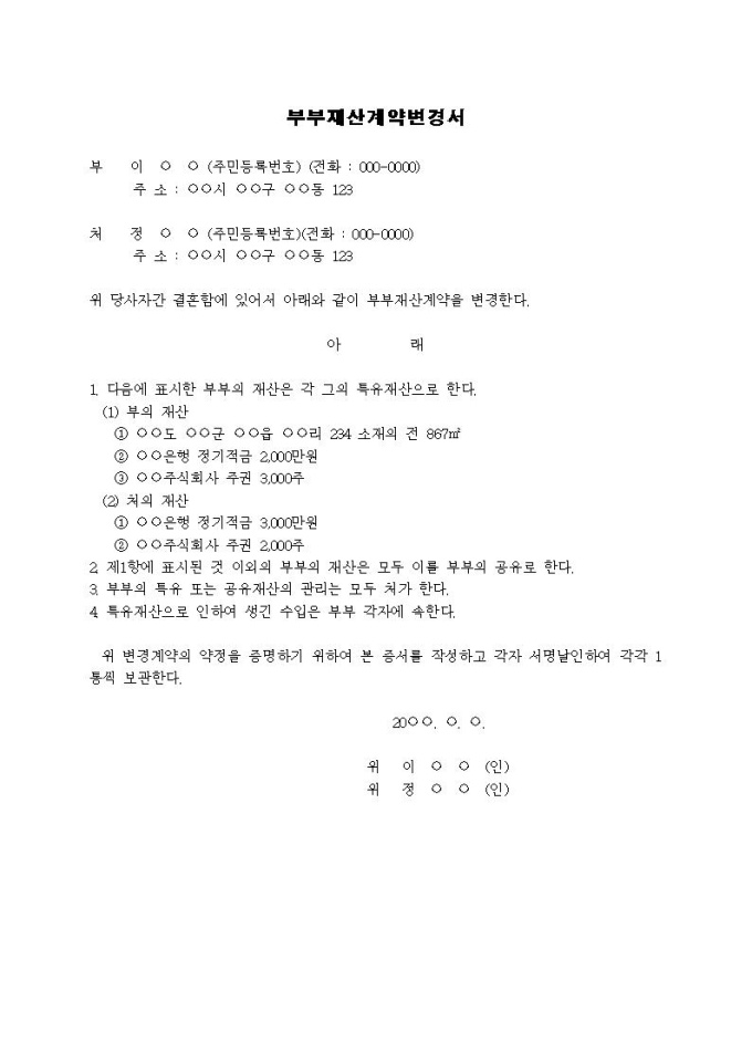 9,000원/월부부재산계약변경서입니다.