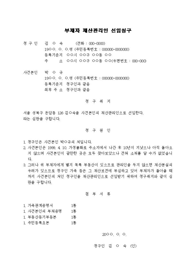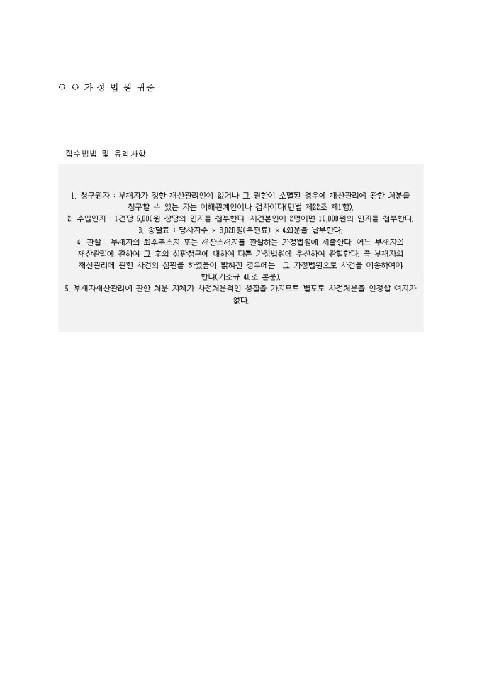 9,000원/월부재자 재산관리인 선임청구서(10년이상 행불)입니다.
