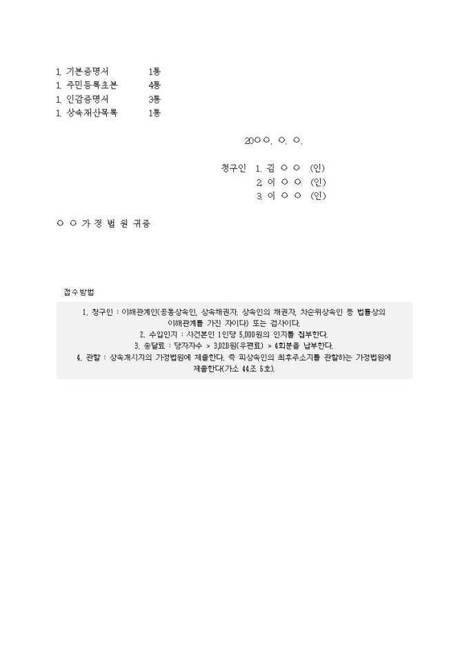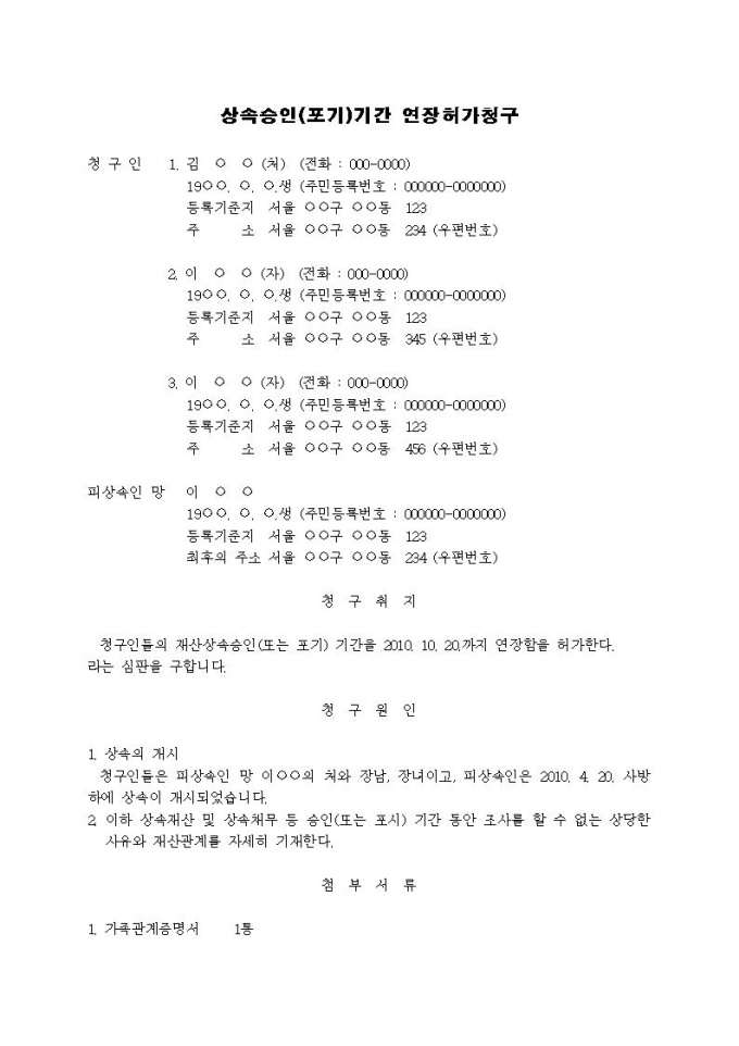 9,000원/월상속승인(포기)기간 연장허가청구서입니다.