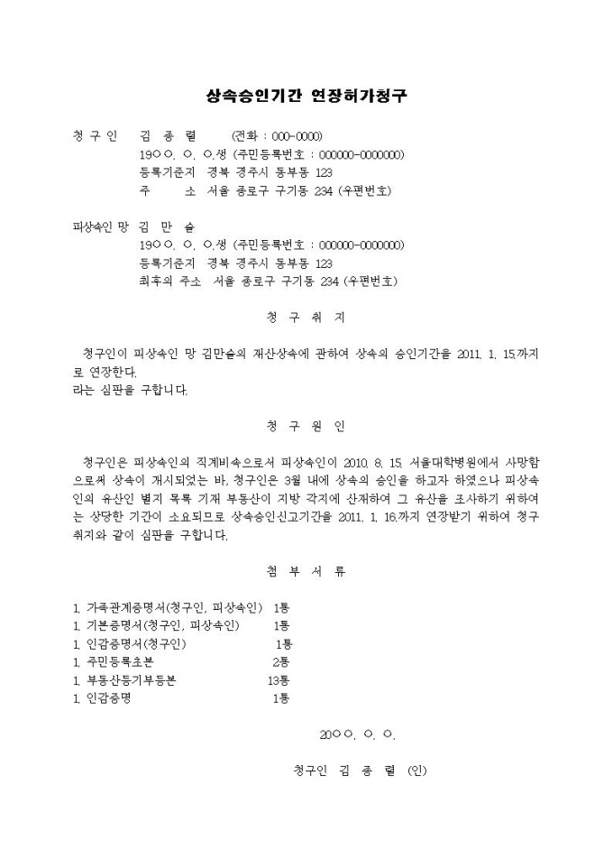 상속승인기간 연장허가청구서