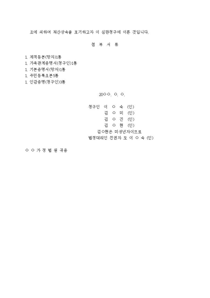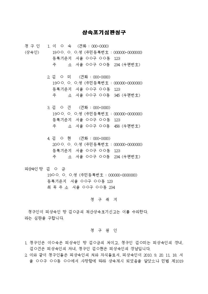 9,000원/월상속포기 심판청구서(2)입니다.