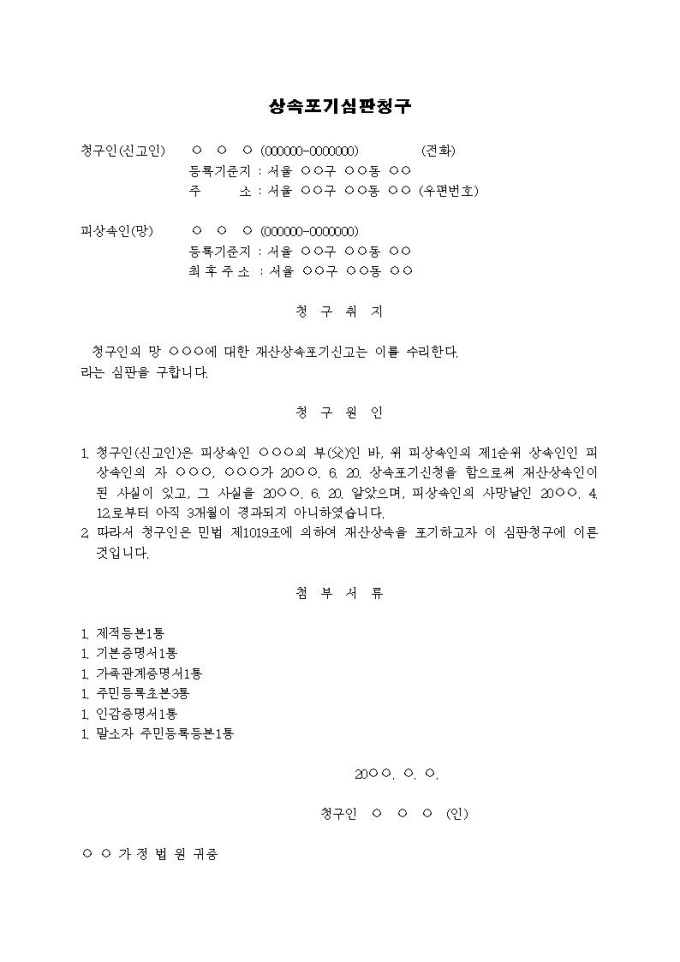 9,000원/월상속포기 심판청구서(5)입니다.