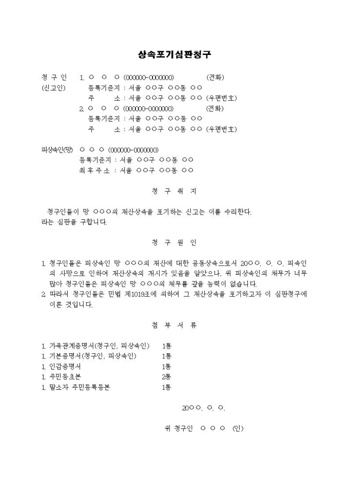 9,000원/월상속포기 심판청구서(6)입니다.