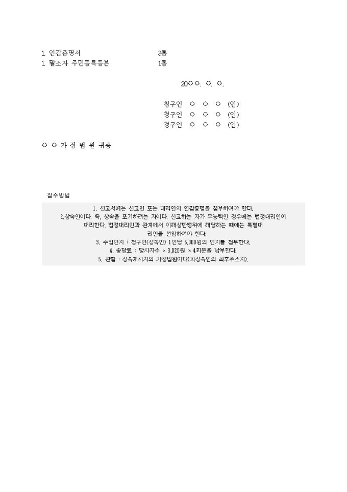 9,000원/월상속포기 심판청구서(8)입니다.
