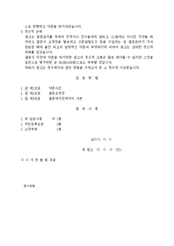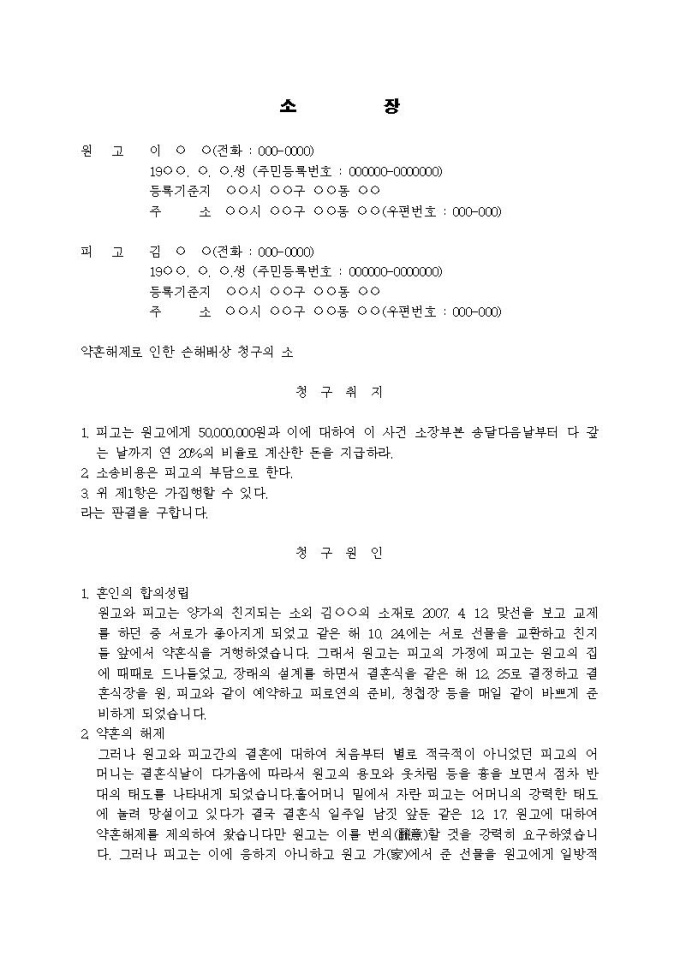 9,000원/월약혼해제로 인한 손해배상 청구의 소장(2)입니다.