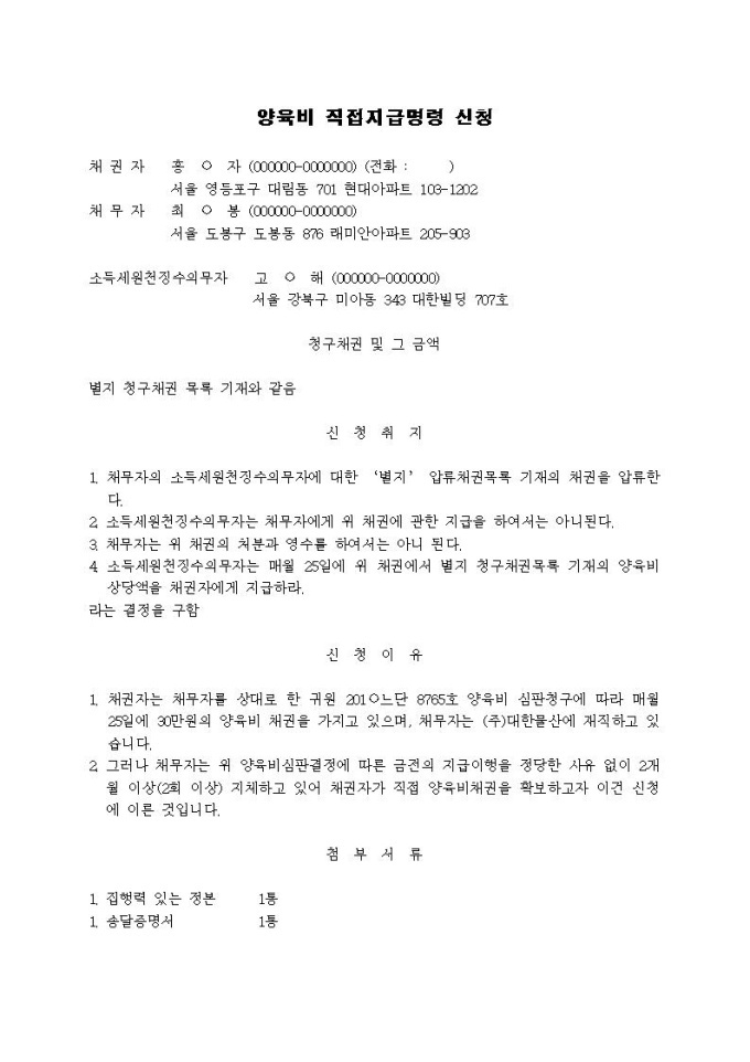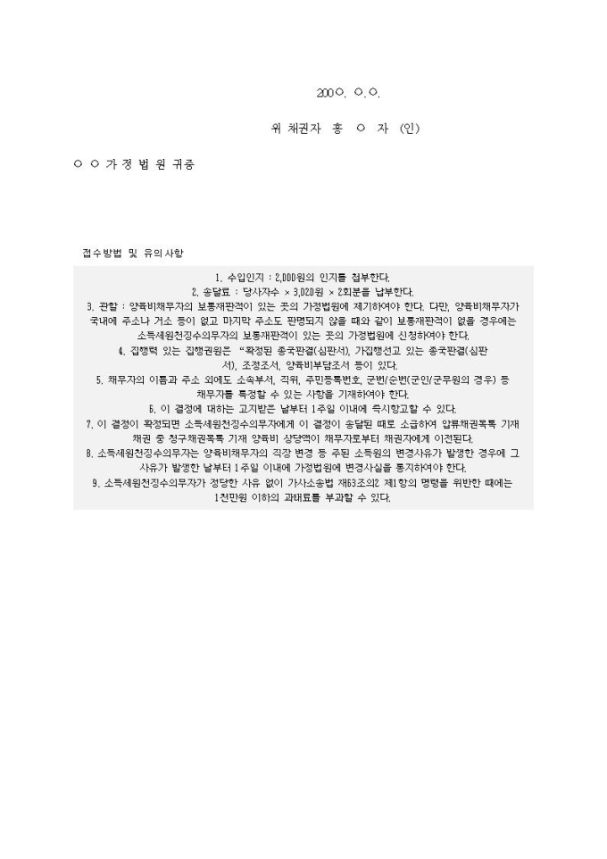 9,000원/월양육비 직접지급명령신청서(2)입니다.