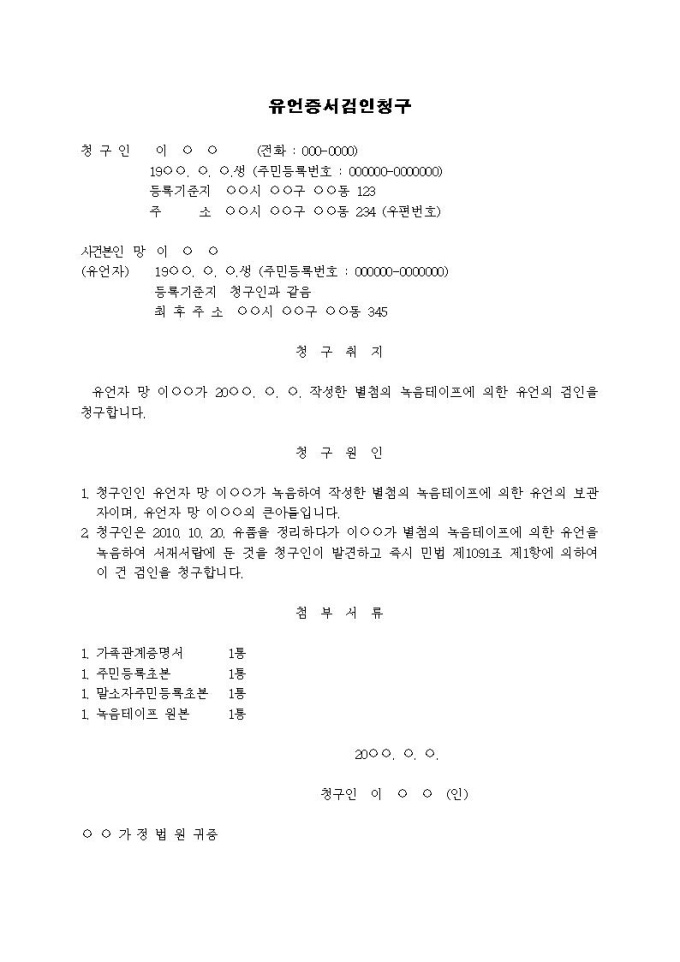 9,000원/월유언검인청구서(녹음테이프)입니다.