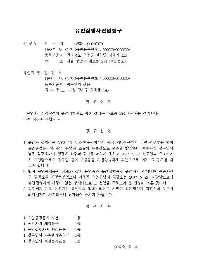 9,000원/월유언집행자 선임청구서(1)입니다.