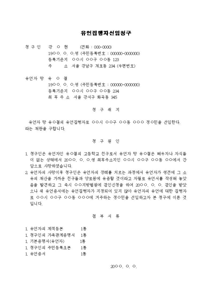 유언집행자 선임청구서(2)입니다.