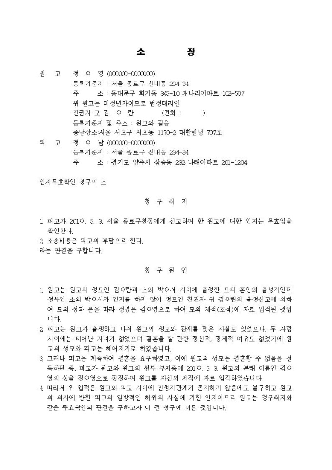 9,000원/월인지무효확인 청구의 소장(원고의 의사에 반한 인지신고)(2)입니다.
